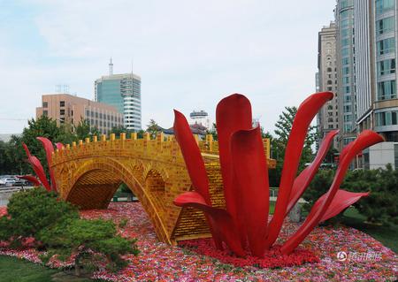 作为长安街沿线主题花坛景观布置中的一个重要组成部分,代表中国五大发展理念中的“开放”主题。